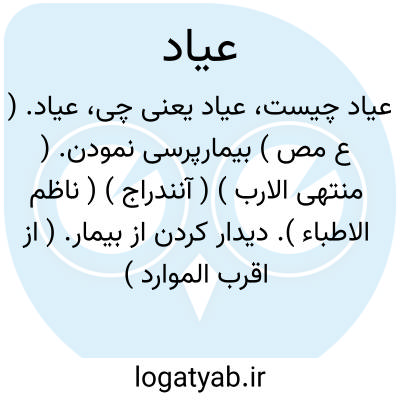 عیاد. ( ع مص ) بیمارپرسی نمودن. ( منتهی الارب ) ( آنندراج ) ( ناظم الاطباء ). دیدار کردن از بیمار. ( از اقرب الموارد ). عیادة. عَود. عُوادة. رجوع به عَوْد و عوادة و عیادة شود.