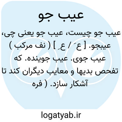 عیبجو. [ ع َ / ع ِ ] ( نف مرکب ) عیب جوی. عیب جوینده. که تفحص بدیها و معایب دیگران کند تا آشکار سازد. ( فرهنگ فارسی معین ) ( از ناظم الاطباء ): ازین نازک طبعی، خرده گیری، عیب جوئی، بدخوئی، که از آب کوثر نفرت گرفتن. ( سندبادنامه ص 206 ).