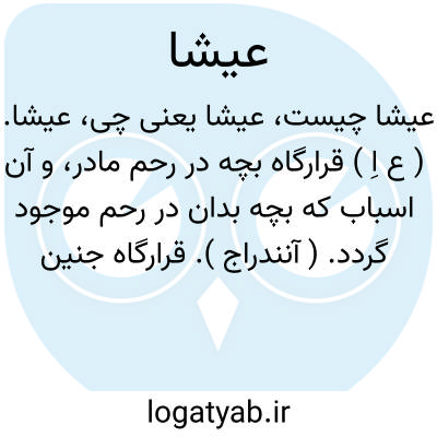عیشا. ( ع اِ ) قرارگاه بچه در رحم مادر، و آن اسباب که بچه بدان در رحم موجود گردد. ( آنندراج ). قرارگاه جنین در شکم مادر. ( ناظم الاطباء ). قرارگاه طفل در رحم مادر. ( فرهنگ فارسی معین ):