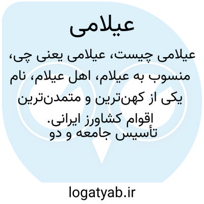منسوب به عیلام، اهل عیلام، نام یکی از کهن‌ترین و متمدن‌ترین اقوام کشاورز ایرانی. تأسیس جامعه و دولت عیلام، که یکی از قدیمترین جوامع بوده از لحاظ فنی بر زراعت مشروب از آب رود مبتنی بود.