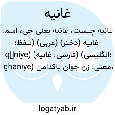 (یِ ) [ ع. غانیة ] (ص. ) مؤنث غانی ۱ - زنی زیبا که نیاز به آرایش نداشته باشد. ۲ - زن پاکدامن شوهردار.