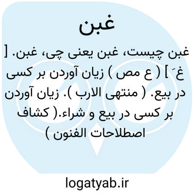 (غَ بْ ) [ ع. ] ۱ - (مص م. ) زیان وارد کردن برکسی در معامله.۲ - فریفتن. ۳ - (مص ل. ) زیان دیدن در خرید و فروش. ۴ - (اِ. ) ضرر، زیان. ۵ - افسوس، دریغ.