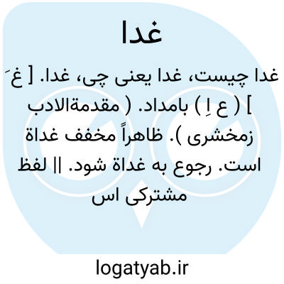 غدا. [ غ َ ] ( ع اِ ) بامداد. ( مقدمةالادب زمخشری ). ظاهراً مخفف غداة است. رجوع به غداة شود. || لفظ مشترکی است که در فارسی و عربی به معنی طعام به کار برند ولی در اصل به غذائی که هنگام صبح تناول شود اطلاق کنند: