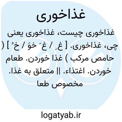 عمل غذا خوردن طعام خوردن. یا اطاق ( سالن ) غذا خوری. اطاقی ( سالنی ) که در آن غذا صرف کنند. یا قاشق غذا خوری. قاشقی که بدان طعام خورند. یا میز غذا خوری. میزی که روی آن غذا چینند.