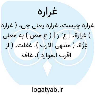 غراره. [ غ ِ رَ / رِ ] ( اِ ) نوعی از سلاح جنگ است و آن را در روز جنگ پوشند و بعضی گویند غراده به دال است و آن به معنی خود آهنین باشد. ( برهان قاطع ). نوعی از سلاح، لیرْدْ. ( المعجم فی معاییر اشعار العجم چ 1 آقای مدرس ص 191 و حاشیه آن ). نوعی از پوشش سلاحی.( فرهنگ رشیدی ). پیراهنی را که در زیر زره پوشند، غِلاله گویند. ( انجمن آرا ) ( اقرب الموارد ):
