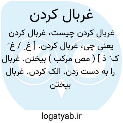 غربال کردن. [ غ ِ / غ َ ک َ دَ ] ( مص مرکب ) بیختن. غربال را به دست زدن. الک کردن. غربال بیختن. غربلة. ( المنجد ). دحلاصة. ( منتهی الارب ). || کنایه از تفحص و جستجوی بسیار. ( آنندراج ) ( از فرهنگ نظام ). کنجکاوی. ( مجموعه مترادفات ):