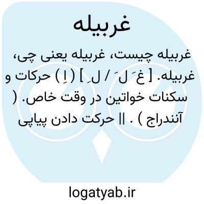 ( اسم ) ۱ - حرکت پیاپی قسمت تحتانی بدن مثل حرکت غربیل ( غربال ) ۲ - نوعی قر کون و کچول. یا قرو غربیله. قر دادن به کمر ادا و اطوار ۳ - حرکات و سکنات زنان در وقت آرمیدن.