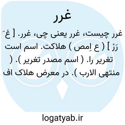 (غَ رَ ) [ ع. ] ۱ - (اِمص. ) هلاکت. ۲ - خطر. ۳ - (مص ل. ) فریب خوردن.