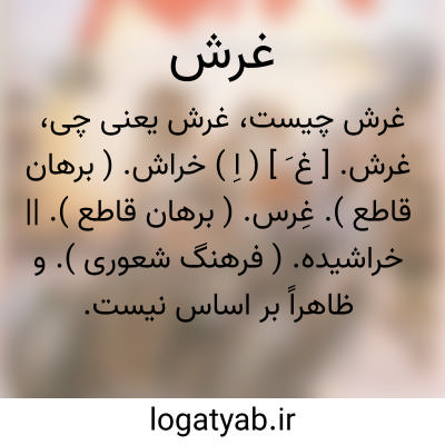غرش. [ غ َ ] ( اِ ) خراش. ( برهان قاطع ). غِرس. ( برهان قاطع ). || خراشیده. ( فرهنگ شعوری ). و ظاهراً بر اساس نیست. || خشم و قهر و غضب. غَرس. غِرس. ( برهان قاطع ). غَرَس. ( فرهنگ اسدی ). غُرِّش. ( برهان قاطع ):