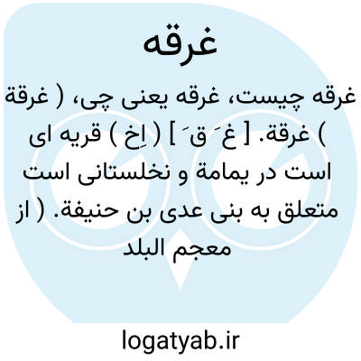 ( غرقة ) غرقة. [ غ َ ق َ ] ( اِخ ) قریه ای است در یمامة و نخلستانی است متعلق به بنی عدی بن حنیفة. ( از معجم البلدان ).