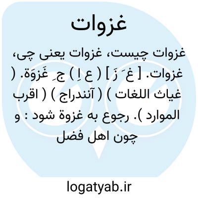غزوات. [ غ َ زَ ] ( ع اِ ) ج ِ غَزوَة. ( غیاث اللغات ) ( آنندراج ) ( اقرب الموارد ). رجوع به غزوة شود: و چون اهل فضل در ایام ایشان [سلجوقیان ] حظی نیافته اند و به شرح حالات و مقالات و غزوات ایشان اعتنایی ننموده کس از ایشان یاد نیاورد و از معالی و مآثر ایشان یادگاری نماند. ( ترجمه تاریخ یمینی چ 1272 هَ. ش. ص 7 ). بر سر غزوات سلطان آییم. ( ترجمه تاریخ یمینی ایضاً ص 257 ). || ( اِخ ) جنگهایی است که پیغامبر ( ص ) در آن شرکت میفرموده است، مقابل سرایا ( ج ِ سریه ) که جنگهایی بود که به امر رسول ( ص ) بی حضور او انجام میشد. صاحب امتاع الاسماع غزوات پیغمبر را مرتب برحسب تاریخ وقوع چنین آورده است: