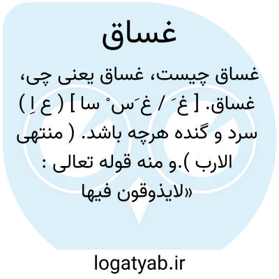 ۱ - ( صفت ) سرد و گندیده ۲ - ( اسم ) خون و چرکی که از بدن دوزخیان جریان یابد ۳ - شراب دوزخیان.
