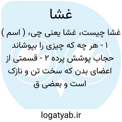 ( اسم ) ۱ - هر چه که چیزی را بپوشاند حجاب پوشش پرده ۲ - قسمتی از اعضای بدن که سخت تن و نازک است و بعضی قسمتهای عضلات و جز آن را پوشیده مانند: غشائ مخاطی بینی غشائ فانی رحم غشائ زلالی غشائ رطوبت مفصلی غشائ مخی عظام جمع: اغشیه.