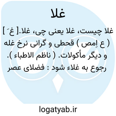 غلا.[ غ َ ] ( ع اِمص ) قحطی و گرانی نرخ غله و دیگر مأکولات. ( ناظم الاطباء ). رجوع به غلاء شود: فضلای عصر در ذکر آن غلا منظومات بسیار گفتند. ( ترجمه تاریخ یمینی چ 1272 هَ. ق. ص 330 ). و عاقبةالامر در قلعه غلا و قحط و وبا ظاهر گشت. ( جامع التواریخ رشیدی ).