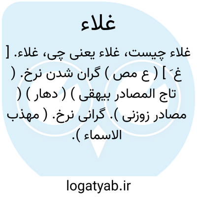 غلاء. [ غ َ ] ( ع مص ) گران شدن نرخ. ( تاج المصادر بیهقی ) ( دهار ) ( مصادر زوزنی ). گرانی نرخ. ( مهذب الاسماء ). قحط و گران شدن نرخ غله و هرچیز. ( غیاث اللغات ). گران گردیدن نرخ. ( منتهی الارب ). ضد رخص. بالا رفتن قیمت. ( از اقرب الموارد ): در میان اهل فریم غلای عظیم ظاهر شد. ( ترجمه تاریخ یمینی چ 1272 هَ. ق. ص 268 ). در سنه احدی و اربعمائه ( 401 ) در بلاد خراسان عموماً و در نیشابور خصوصاً قحطی شامل و غلائی هایل و بلائی نازل حادث شد. ( تاریخ بیهقی ایضاً ص 325 ). || ( ص ) رجل غلاء؛ مرد سخت دوراندازنده تیر را. ( منتهی الارب ). بعید الغلو بالسهم. ( اقرب الموارد ). || ( اِ ) نوعی از ماهی خرد. ج، اَغلیَة. ( منتهی الارب ) ( آنندراج ). سمک قصیرالجسم. ( اقرب الموارد ).