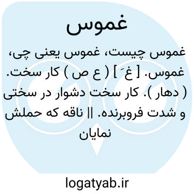 غموس. [ غ َ ] ( ع ص ) کار سخت. ( دهار ). کار سخت دشوار در سختی و شدت فروبرنده. || ناقه که حملش نمایان نگردد تا وقت زادن. || ناقه ای که در مغز استخوانش شک باشد که تباه و گداخته است یا سخت و محکم. || شتر ماده باردار که دنب برندارد تا بار آن پیدا گردد. || زخم گذاره. ( منتهی الارب ) ( آنندراج ). طعنه فراخ. ( مهذب الاسماء ). || الیمین الغموس؛ سوگند دروغ که صاحب خود را در گناه فروبرد سپس آن در دوزخ. یا سوگند دروغ که صاحبش دیده و دانسته کذب کند و سوگند خورد تا مال غیر را تلف نماید. ( منتهی الارب ) ( آنندراج ). سوگندی به دروغ، و آن را یمین غموص به صاد نیز گویند. سوگندی که در این آیه از آن منع شده است: لایؤاخذکم اﷲ باللغو فی ایمانکم ولکن یؤاخذکم بما عقدتم الایمان. ( قرآن 89/5 ):