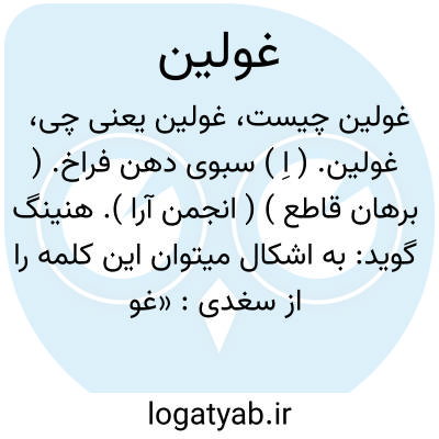 غولین. ( اِ ) سبوی دهن فراخ. ( برهان قاطع ) ( انجمن آرا ). هنینگ گوید: به اشکال میتوان این کلمه را از سغدی: «غوزئک » ( ظرف ) ( دییانا 277 ) مأخوذ دانست. در سغدی مسیحی غودی وزنه است. با کلمه های غولک، غلک،و غله مقایسه شود. ( حاشیه برهان قاطع چ معین ). غولین که دودستی نیز گویند سبویی بود سرفراخ. ( از فرهنگ اسدی ). سبوی سرگشاده. ( فرهنگ جهانگیری ). سبوی درگشاده. ( فرهنگ رشیدی ). کوزه بزرگ دهن فراخ: