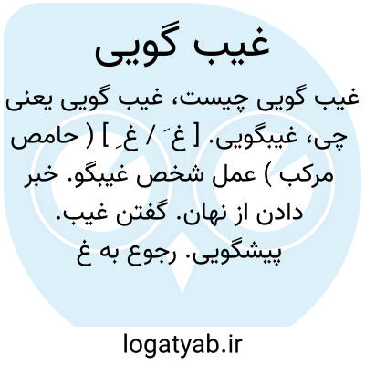 غیبگویی. [ غ َ / غ ِ ] ( حامص مرکب ) عمل شخص غیبگو. خبر دادن از نهان. گفتن غیب. پیشگویی. رجوع به غَیب و غیبگو شود.