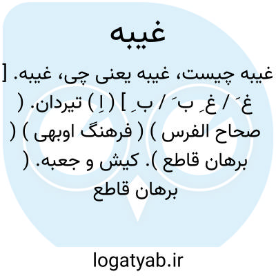 غیبه. [ غ َ / غ ِ ب َ / ب ِ ] ( اِ ) تیردان. ( صحاح الفرس ) ( فرهنگ اوبهی ) ( برهان قاطع ). کیش و جعبه. ( برهان قاطع ). ترکش و جعبه. ( غیاث اللغات ). || هر یک از آهنهای تُنُک کوچک که بر هم نهند ساختن جوشن را. ( از صحاح الفرس ). پاره های آهن باشد که در جیبه و بکتر و جوشن و دیگر اسلحه بکار برند. ( فرهنگ جهانگیری ). پاره های آهن که در بکتر و جوشن که از جمله اسلحه جنگ است بکار برده شود. ( برهان قاطع ) ( غیاث اللغات ). فولاد و آهن که بر جوشن نصب کنند. ( فرهنگ رشیدی ). پولکهای آهن وپولاد که بر جوشن نصب کنند. ( آنندراج ) ( انجمن آرا ).