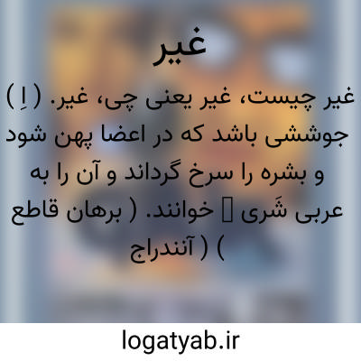 غیر. ( اِ ) جوششی باشد که در اعضا پهن شود و بشره را سرخ گرداند و آن را به عربی شَری ̍ خوانند. ( برهان قاطع ) ( آنندراج ).