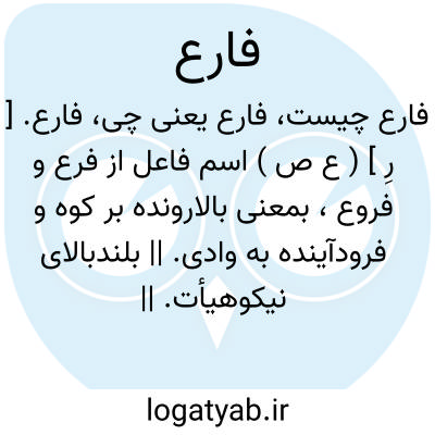 فارع. [ رِ ] ( ع ص ) اسم فاعل از فرع و فروع، بمعنی بالارونده بر کوه و فرودآینده به وادی. || بلندبالای نیکوهیأت. || یک تن از اطرافیان سلطان: هو فارع من فرعة السلطان؛ او یکی از یاران سلطان است. ( از اقرب الموارد ). ج، فَرَعة. || جبل فارع؛ کوهی را میگویند که درازتر از کوه دیگر باشد. ( از اقرب الموارد ).