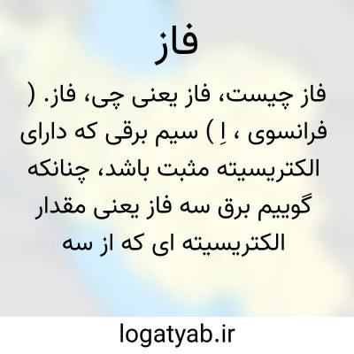 فاز. ( فرانسوی، اِ ) سیم برقی که دارای الکتریسیته مثبت باشد، چنانکه گوییم برق سه فاز یعنی مقدار الکتریسیته ای که از سه سیم مثبت وارد دستگاه کنتور می شود.