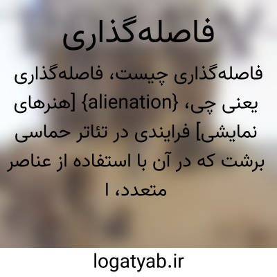 {alienation} [هنرهای نمایشی] فرایندی در تئاتر حماسی برشت که در آن با استفاده از عناصر متعدد، ازجمله نور و موسیقی و نحوۀ بازی، از غرقه شدن تماشاگر و بازیگر در نمایش جلوگیری می شود