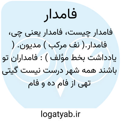 وام دار، قرض دار، مدیون: فام داران تو باشند همه شهر دُرُست / نیست گیتی تهی از فام ده و فام گذار (سوزنی: لغت نامه: فام دار ).