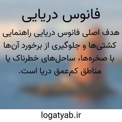 سازه ای دارای چراغ پرنور، برای هشدار دادن به کشتی ها یا هواپیماها. فانوس دریایی نشان دهندۀ آن است که کشتی یا هواپیما به مکانی نزدیک شده است که یا خطرناک یا از لحاظ ناوبری مهم است. با تعدادی آینه یا منشور نور چراغ را تقویت، و آن را در راستای افق یا به طرف بالا و سمت الرأس هدایت می کنند. هر روز تعداد بیشتری از فانوس های دریایی برقی و خودکار می شوند. فانوس های جدید سیگنال رادیویی نیز پخش می کنند. سیگنال فانوس های دریایی ممکن است سوسو زن، با زمان تاریکی ای طولانی تر از دورۀ روشنایی، یا چشمک زن، با زمان تاریکی ای کمتر یا مساوی با دورۀ روشنایی، باشند. چراغ های ثابت ممکن است سبب اشتباه شوند. الگوی روشنایی هر فانوس دریایی الگویی مخصوص است و کشتی یا هواپیما آن را شناسایی می کند. در هوای مه آلود، از علایم صوتی نظیر بوق، آژیر، و مواد منفجره نیز استفاده می کنند. بویه های چراغ دار، سوت ها، و ناقوس های هشداردهندۀ مه گرفتگی با حرکت امواج به کار می افتند.