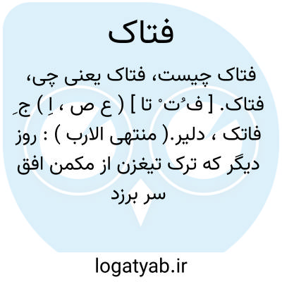 فتاک. [ ف ُت ْ تا ] ( ع ص، اِ ) ج ِ فاتک، دلیر.( منتهی الارب ): روز دیگر که ترک تیغزن از مکمن افق سر برزد، تیغزنان ناپاک از فتاک اتراک مراکب گرم کردند. ( جهانگشای جوینی ). رجوع به فاتک شود.