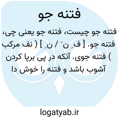 فتنه جو. [ ف ِ ن َ / ن ِ ] ( نف مرکب ) فتنه جوی. آنکه در پی برپا کردن آشوب باشد و فتنه را خوش دارد. فتنه انگیز. رجوع به فتنه شود. || سپاهی. جنگجو: