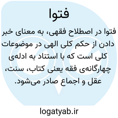 * فتوا دادن: (مصدر لازم ) صدور رٲی و نظر فقهی از جانب فقیه در مورد یک حُکم شرعی.