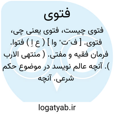 ( اسم ) آنچه عالم دینی نویسد در موضوع حکمی شرعی رای فقیه در حکم شرعی فرعی جمع: فتاوی.