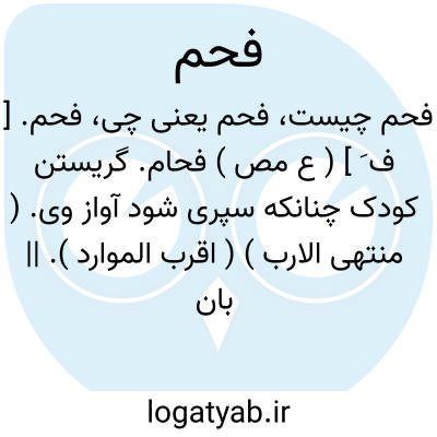 فحم. [ ف َ ] ( ع مص ) فحام. گریستن کودک چنانکه سپری شود آواز وی. ( منتهی الارب ) ( اقرب الموارد ). || بانگ کردن گوسپند و کودک. ( منتهی الارب ). رجوع به فحام شود. || ( اِ ) انگِشت است که به هندی کویله نامند، و آن اخگری است که خاموش کرده باشند. ( فهرست مخزن الادویه ). انگِشت. ( منتهی الارب ). زغال. ( حاشیه فرهنگ اسدی نخجوانی ):