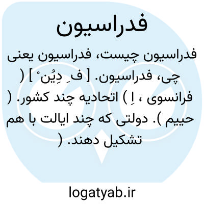 ( اسم ) ۱ - اتحاد چند کشور و حکومت مستقل یا چند استان ( ایالت ) که در امور داخلی خود استقلال دارند و جمعا به صورت دولتی متحد در آیند ۲ - سازمانی ورزشی که اداره کننده یک رشته ورزش است: فدراسیون فوتبال فدراسیون کشتی.