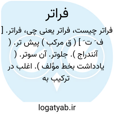 فراتر. [ ف َ ت َ ] ( ق مرکب ) پیش تر. ( آنندراج ). جلوتر. آن سوتر. ( یادداشت بخط مؤلف ). اغلب در ترکیب به کار رود، مانند: