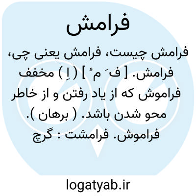 - فرامش شدن. فرامشکار. فرامشکاری. فرامش کردن. فرامشی. رجوع به این مدخل ها و نیز رجوع به فرامشت و فراموش شود.
