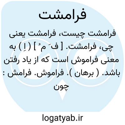 فرامشت. [ ف َ م ُ ] ( اِ ) به معنی فراموش است که از یاد رفتن باشد. ( برهان ). فراموش. فرامش: