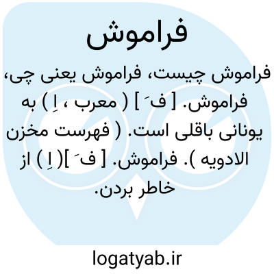 ۱ - ( اسم ) از یاد رفتن از خاطر محو شدن ۲ - ( صفت ) از یاد رفته از خاطر محو شده: مبادت فراموش گفتار من.