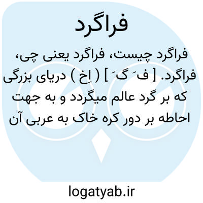 فراگرد. [ ف َ گ َ ] ( اِخ ) دریای بزرگی که بر گرد عالم میگردد و به جهت احاطه بر دور کره خاک به عربی آن رامحیط گویند و مملکت چین قریب به آن دریاست. ( انجمن آرا ). منظور مؤلف انجمن آرا روشن نیست و این نام درمأخذ دیگری دیده نشد. گمان میرود که این مطالب مبتنی بر بی خبری مؤلف مزبور از جغرافیای عالم است و وی اقیانوس هند را محیط بر خشکی های عالم دانسته است.