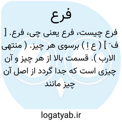(فَ رْ ) [ ع. ] (اِ. ) ۱ - آن چه که از اصل چیزی جدا شود. ۲ - شعبه، شاخه. ۳ - سود پول.