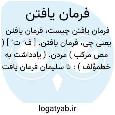 فرمان یافتن. [ ف َ ت َ ] ( مص مرکب ) مردن. ( یادداشت به خطمؤلف ): تا سلیمان فرمان یافت هیچ خلق به گور وی نرسید مگر دو تن، نام یکی عفان و آن دیگری بلوقیا بود. ( تاریخ بلعمی ). پنج سال و نه ماه خلیفه بود و به سامره فرمان یافت. ( تاریخ بلعمی ). [ نمرود ]چون هزار و چهارصد سال بزیست فرمان یافت. ( تاریخ بلعمی ). ناتوان شد و دیگر شب فرمان یافت. ( تاریخ بیهقی ). چون خوارزمشاه فرمان یافت ممکن نشد تا تابوت و جزآن ساختن. ( تاریخ بیهقی ). هارون سه روز بزیست و روزشنبه فرمان یافت. ( تاریخ بیهقی ). وی را پسری آمد و فرمان یافت. ( قصص الانبیاء ). پادشاهی جهان سیزده سال و چند ماه بکرد و فرمان یافت. ( ابن بلخی ). پس شیرویه آن را بیافت و بخورد و فرمان یافت. ( ابن بلخی ). از بیماری خلاص یافت و فرمان یافت. ( ذخیره خوارزمشاهی ).