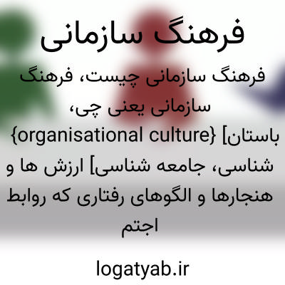 {organisational culture} [باستان شناسی، جامعه شناسی] ارزش ها و هنجارها و الگوهای رفتاری که روابط اجتماعی را در یک سازمان مفروض مشخص می کند