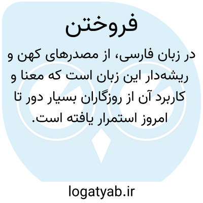 در زبان فارسی، از مصدرهای کهن و ریشه‌دار این زبان است که معنا و کاربرد آن از روزگاران بسیار دور تا امروز استمرار یافته است. در متون باستانی، از جمله در اوستا، صورت این واژه به شکل فروخش آمده و ظاهراً به مفهوم صدا کردن یا در معرض فروش گذاشتن بوده است. در زبان پهلوی نیز صورت آن به گونه‌ی فرختن دیده می‌شود که با تحول واژگانی در گذر تاریخ، در فارسی میانه و نو به «فروختن» تبدیل شده است. این تغییر، نمونه‌ای آشکار از پویایی و تحول نظام واژه‌سازی در زبان فارسی است که با حفظ ریشه‌ی معنایی خود، شکل تلفظی و نوشتاری تازه‌ای یافته است.