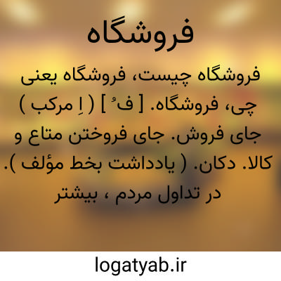 فروشگاه. [ ف ُ ] ( اِ مرکب ) جای فروش. جای فروختن متاع و کالا. دکان. ( یادداشت بخط مؤلف ). در تداول مردم، بیشتر به دکانهای بزرگ که متاع متنوع دارند اطلاق شود.