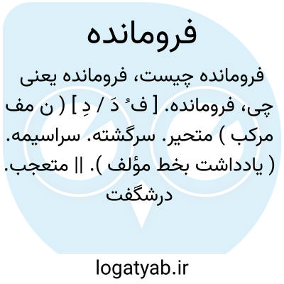 فرومانده. [ ف ُ دَ / دِ ] ( ن مف مرکب ) متحیر. سرگشته. سراسیمه. ( یادداشت بخط مؤلف ). || متعجب. درشگفت: