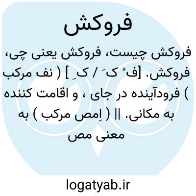فروکش. [ف ُ ک َ / ک ِ ] ( نف مرکب ) فرودآینده در جای، و اقامت کننده به مکانی. || ( اِمص مرکب ) به معنی مصدر نیز آمده است، یعنی فرود آمدن در جایی. ( غیاث ).