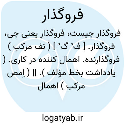 فروگذار. [ ف ُ گ ُ ] ( نف مرکب ) فروگذارنده. اهمال کننده در کاری. ( یادداشت بخط مؤلف ). || ( اِمص مرکب ) اهمال. فروگذاشت. ( یادداشت بخط مؤلف ).