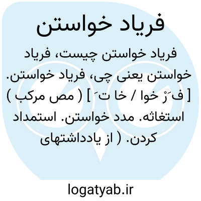 فریاد خواستن. [ ف َرْ خوا / خا ت َ ] ( مص مرکب ) استغاثه. مدد خواستن. استمداد کردن. ( از یادداشتهای مؤلف ): به ملک سند کس فرستادند و فریادخواستند و گفتند که سپاه عرب آمد. ( تاریخ بلعمی ).