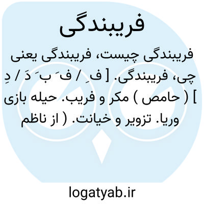 فریبندگی. [ ف ِ / ف َ ب َ دَ / دِ ] ( حامص ) مکر و فریب. حیله بازی وریا. تزویر و خیانت. ( از ناظم الاطباء ):